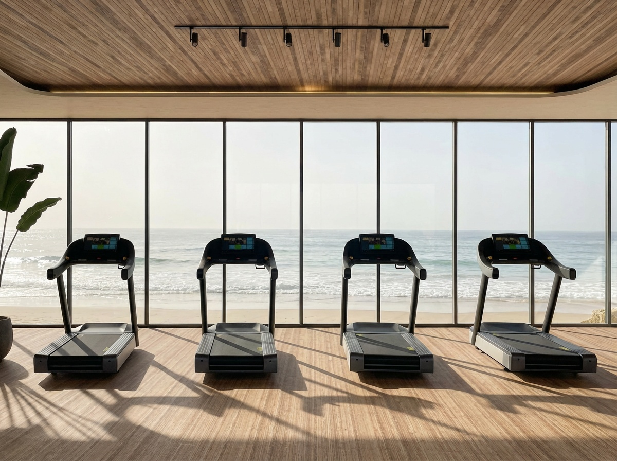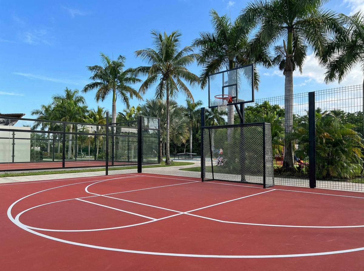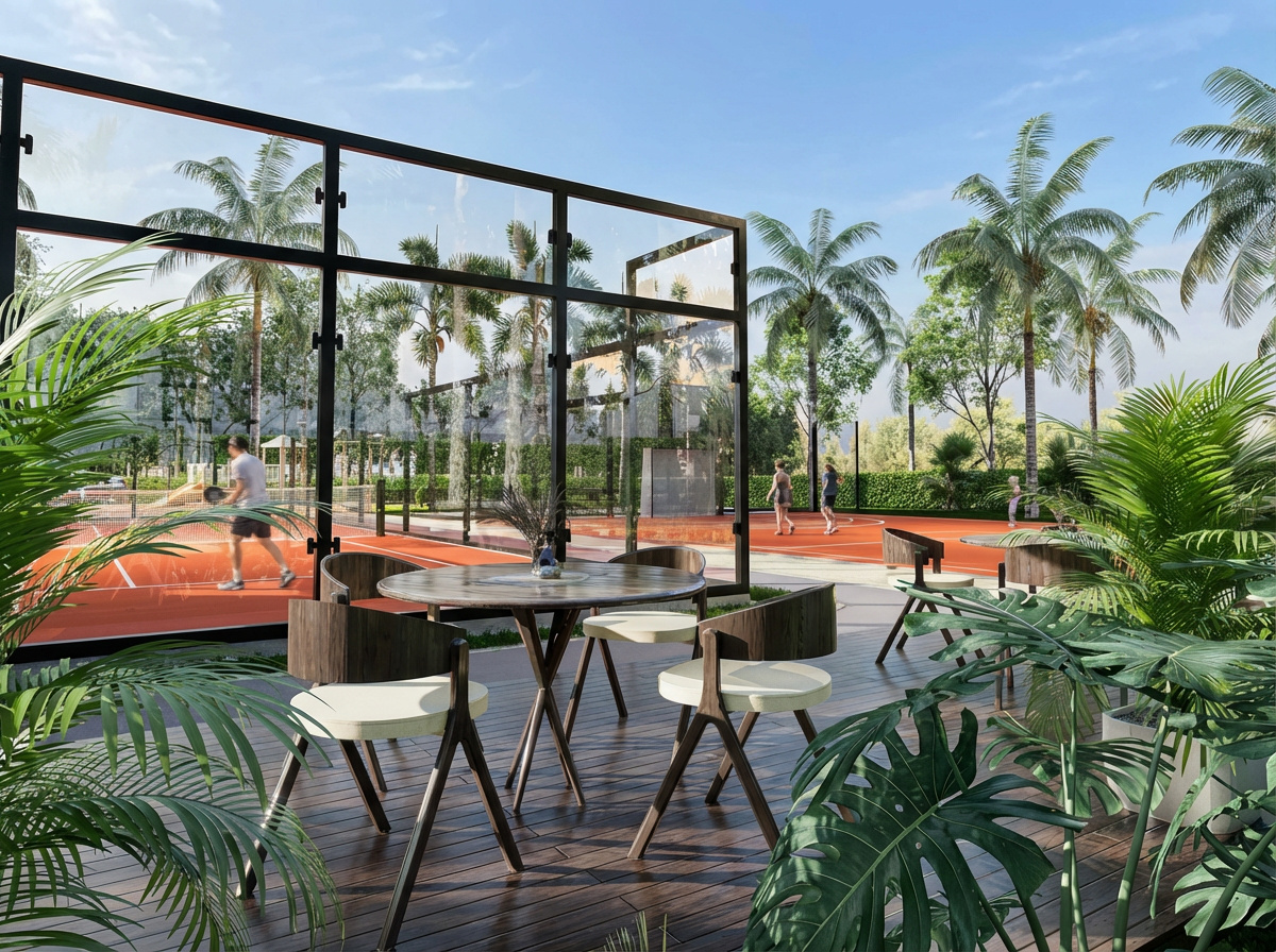 Entrena rodeado de diseño y naturaleza. Canchas de pádel y gimnasio híbrido (indoor/outdoor) para mantener un ritmo de vida dinámico.