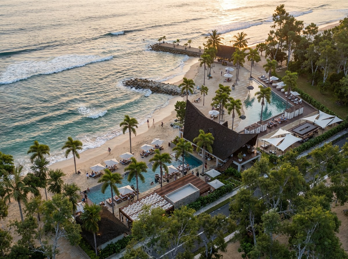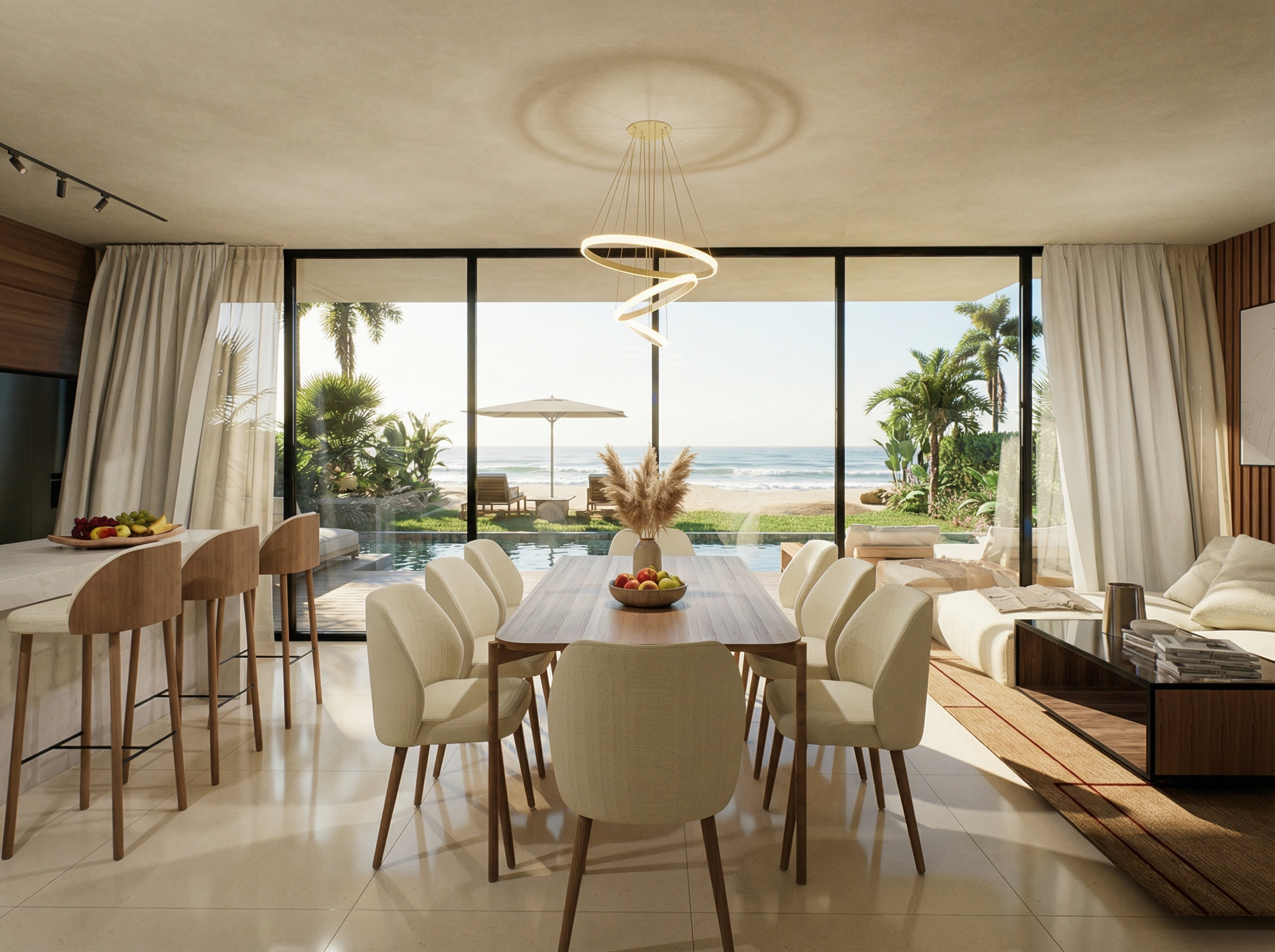 La playa como extensión de tu hogar. Disfruta de un santuario privado con 150m de frente real y una experiencia gastronómica donde los atardeceres marcan el ritmo del día.